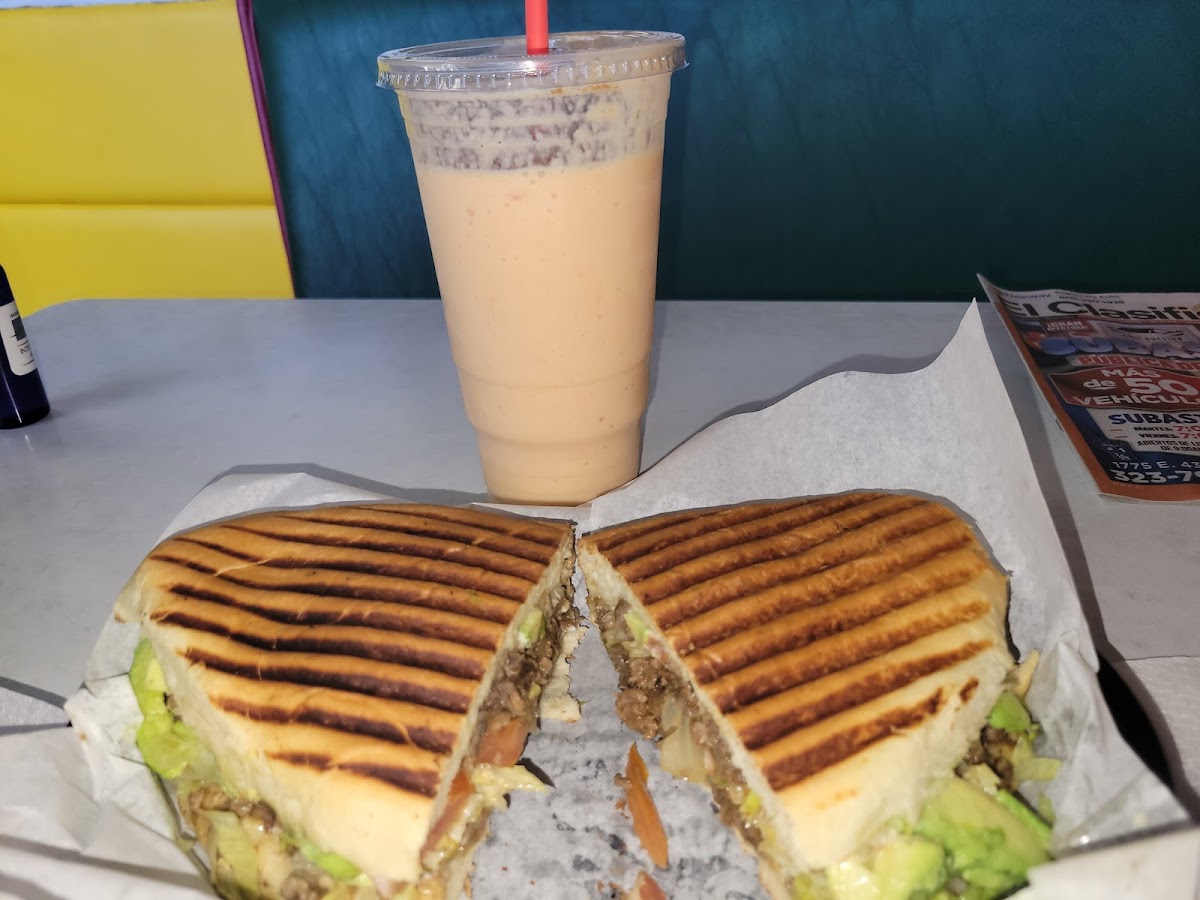 Got a cabeza de queso de puerto and ham torta with cheese, tasted yummy. Also got a vampire juice! Overall good spot they also have pan dulce next door.